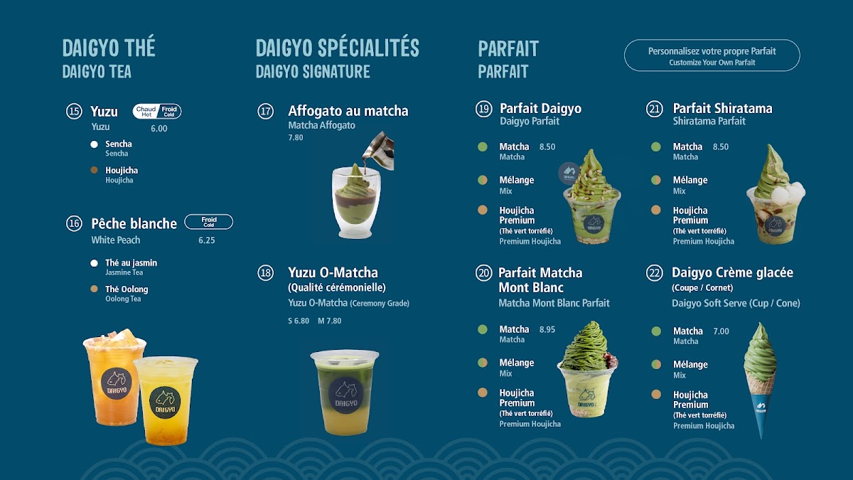The menu features a delightful range of traditional teas, including the Daigyo OMatcha and Houjicha, each priced at CA$5.50. For a richer experience, the Matcha Latté stands at CA$7.25, while the unique Yuzu Matcha has garnered specific praise for its refreshing palate. Customers adore the soft serve options, particularly the matcha and hojicha fusion, which, according to one satisfied patron, keeps the indulgence light and refreshing.